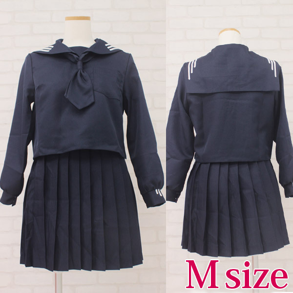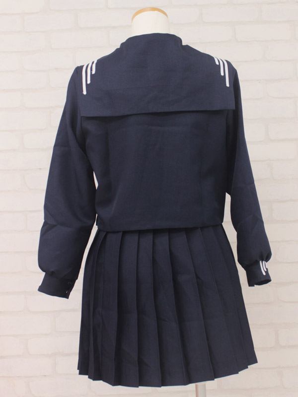 冬服仕様のセーラーブラウスにプリーツスカート、紺色スカーフのセットです!セーラー襟と袖のデザインがお洒落なお嬢様風制服コスチュームです。