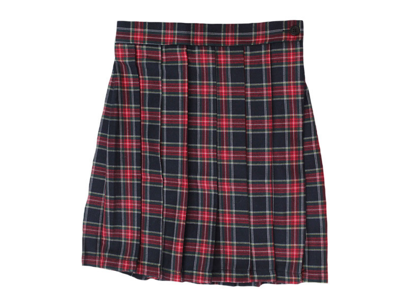 紺×赤の定番配色は、シンプルなデザインでありながらとっても可愛い!短すぎず長すぎない上品な丈が、リアルな制服らしさを演出しています。