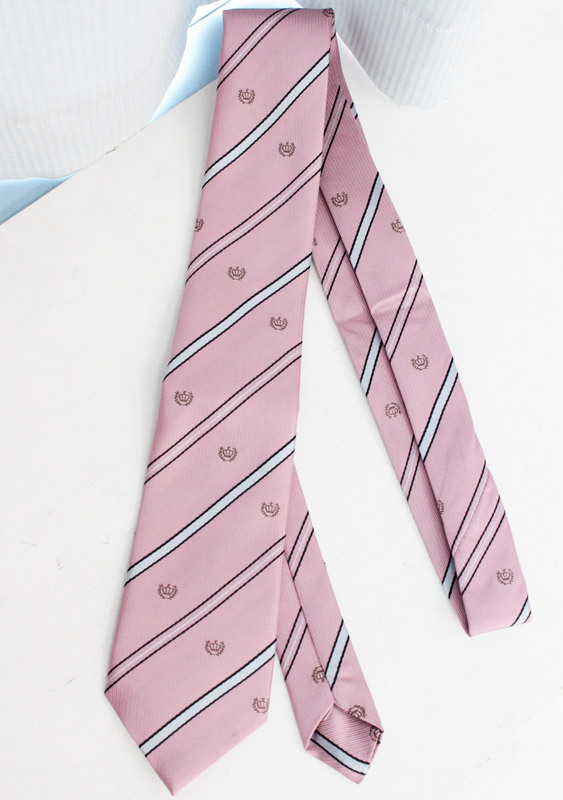 リボンに飽きちゃったらコレ!制服コスプレに欠かせないとっておきのアイテム、うっすらピンクの紋章入りスクールネクタイ単品。
