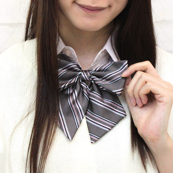 制服コスチュームを可愛く着こなしたい、そんなアナタにはコレ!グレー×ピンクでシンプルに仕上げたスクールリボン単品。