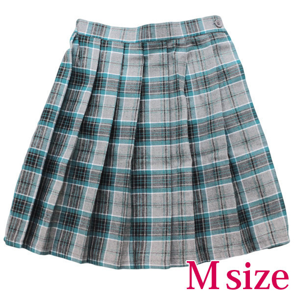 これぞ女子校生の定番アイテム!グレーベースのスカートに、青緑のチェック柄をチョイスしたラメ入りのプリーツスカート単品(M)。