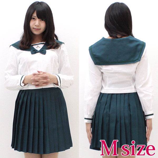 深く濃いグリーンが珍しくて人気!本物そっくりに仕上がった長袖セーラー服のコスチューム。