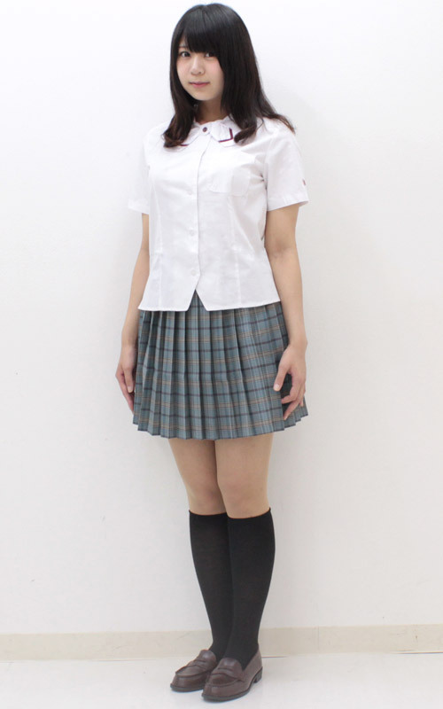 リボン付きのシンプルな白ブラウスに、グレーを基調としたチェック柄スカートがとっても可愛い!学生気分を味わいたい方はもちろん、学園祭などのイベントにもオススメのコスチュームです。