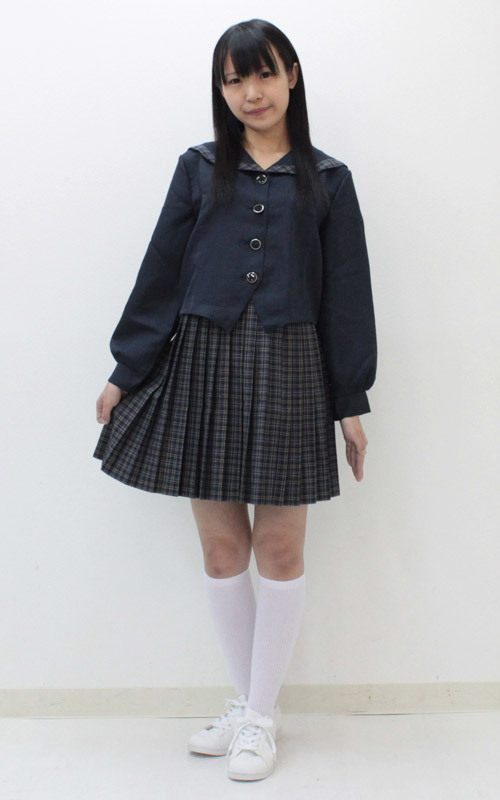 デザイン性バツグン!オシャレな紺チェック柄の冬制服コスプレ(Mサイズ)。