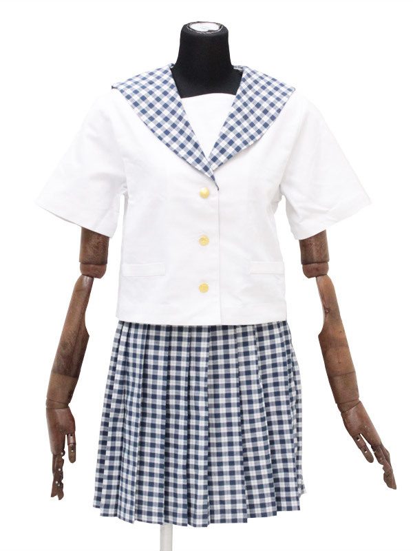 白と紺のギンガムチェック柄がラブリー!私立学園に通うお嬢様風のセーラー服。