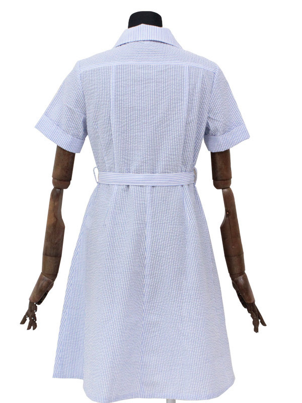 ●風薫る半袖ワンピースの盛夏服タイプ●前ボタン留め仕様●リアルな刺繍入り胸ポケット●スカート部分にポケット付き●付属のベルト調整でウエストマーク可。