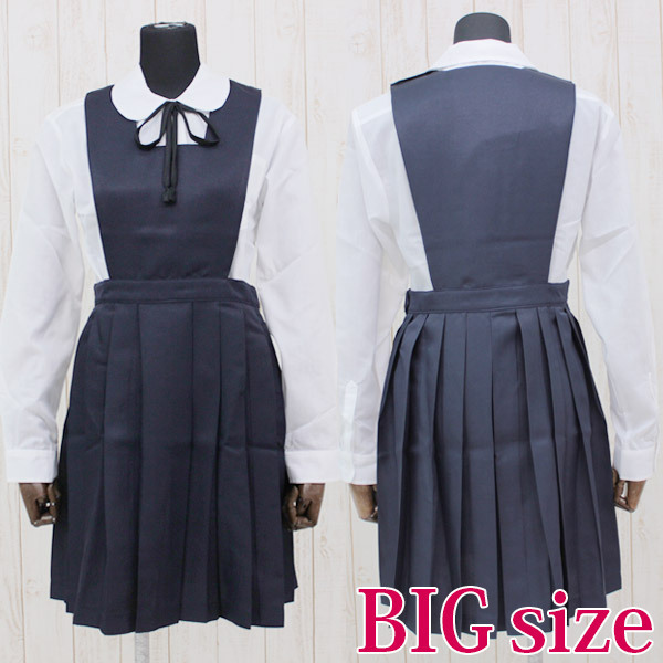 仕様:BIGサイズ:B〜116cm・W〜97cm ブラウス:着丈78cm・袖丈64cm・肩幅50cm・首周り43cm・手首周り24cm ジャンパースカート丈97cm 紐タイ130cm セット内容:ブラウス(丸襟、前ボタン留め)、ジャンパースカート(上半身裏地付き、左肩とウエストにスナップボタン有り、ホック着脱可)、紐タイ