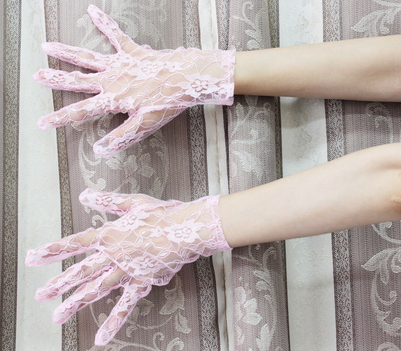 ●優しい雰囲気のパステルピンク●端から端まで贅沢な総レース●手首辺りまでくるショート丈●おとこの娘もOKなフリーサイズ。