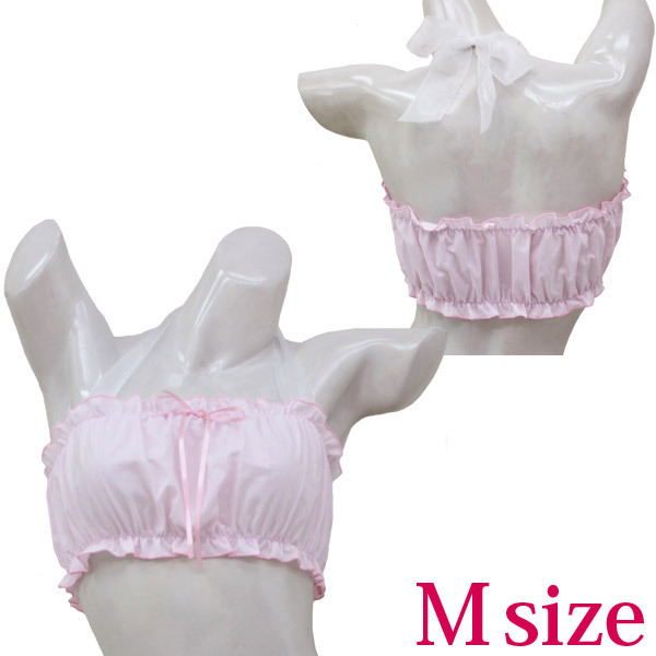 ●ふんわりパステルピンク×ホワイト●バストをすっぽり覆うチューブ型●上下にたっぷりフリルギャザー入り●フロント真ん中に繊細リボンをON●ホルターネックはオーガンジーリボンで可愛らしく。