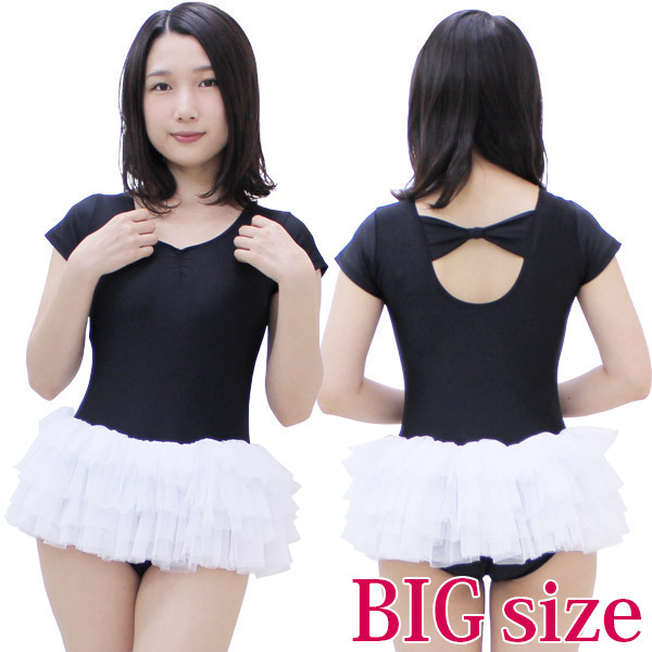 チュールスカート付き半袖レオタード(後ろリボン) 黒×白 BIG