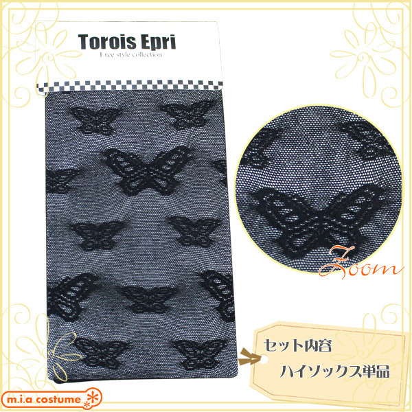 蝶柄ハイソックス 黒 フリーサイズ