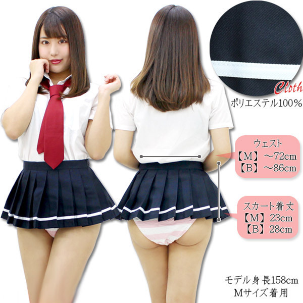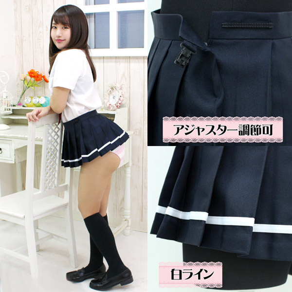 超ミニ無地プリーツスカート単品 紺×白ライン BIG