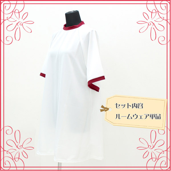 リラックスタイムも可愛くコスプレ♪一枚で着られるワンピース型の体操服コスチューム「体操着ルームウェア エンジ M」。