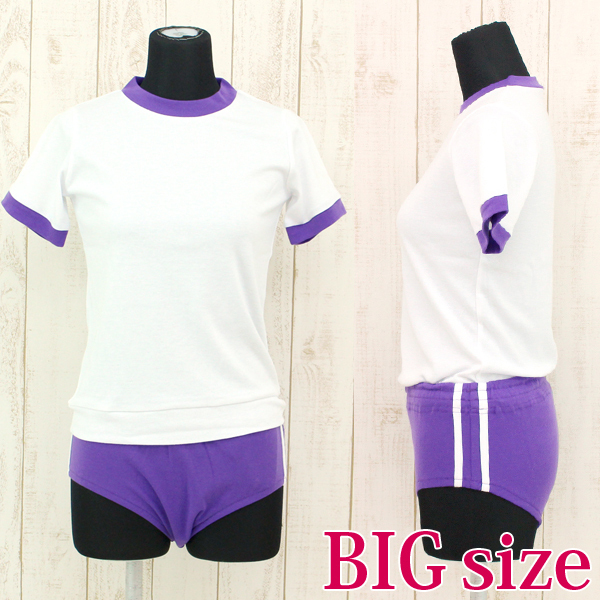 仕様:BIGサイズ B96〜110cm・W〜90cm(伸縮時最大114cm)・H〜100cm 上衣:着丈58cm・肩幅39cm・袖丈21cm ブルマ:股上丈32cm セット内容:上衣、ブルマ 素材:ポリエステル65%、コットン35%