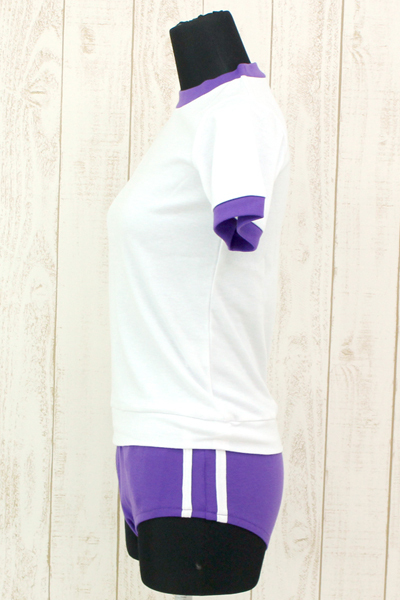 濃いめの紫カラーのブルマに本格的な二本ラインを施した可愛い体操着コスプレ。