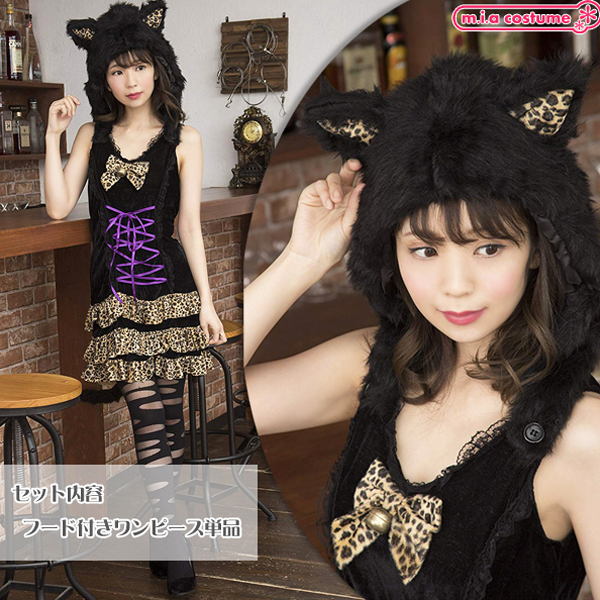 可愛い女豹に変身できる!ふんわりボリューミーな猫耳フードがついたハロウィン仮装。