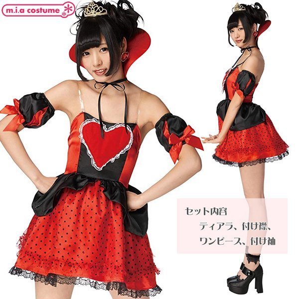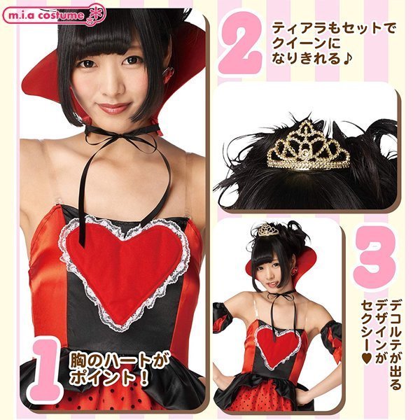充実のセット内容でワンピースにティアラ、付け袖、付け襟がセットとなっていて、付け襟もハート型のこだわりデザインが良い感じ♪ティアラもセットになっているのでこの1セットさえあれば本格的な仮装が楽しめます!