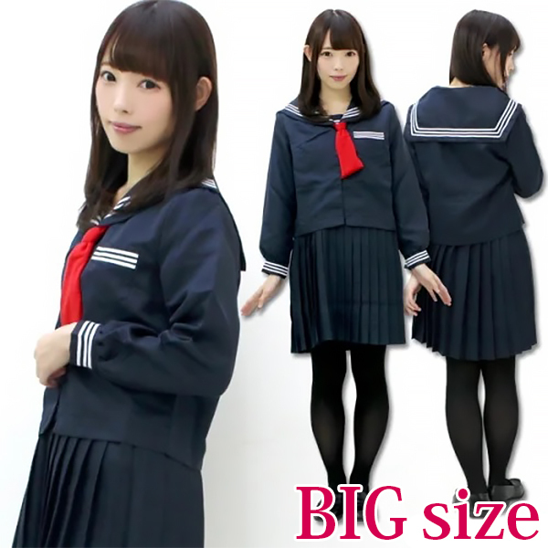 仕様:BIGサイズ:B88〜107cm・W76〜88cm・肩幅44cm・袖丈59cm・着丈(上衣53cm、スカート53cm)・吊り紐の長さ(片側)〜95cm セット内容:上衣(前開きボタン留め)、吊りスカート(横ファスナー、アジャスター調整可)、タイ 素材:ポリエステル100%