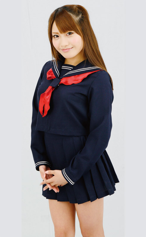 憧れの制服コスプレと言えばやっぱりコレ!白の2本ライン、赤リボンで仕上げた正統派のセーラー服コスチューム。