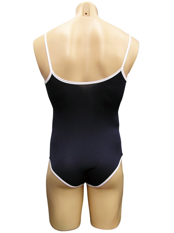 紺カラーを基調とした白パイピング入りのデザインは、どこからどう見ても女性用そのもの!お肌にピタッとフィットする感じがたまらなく、女装好きの男性心をくすぐります。