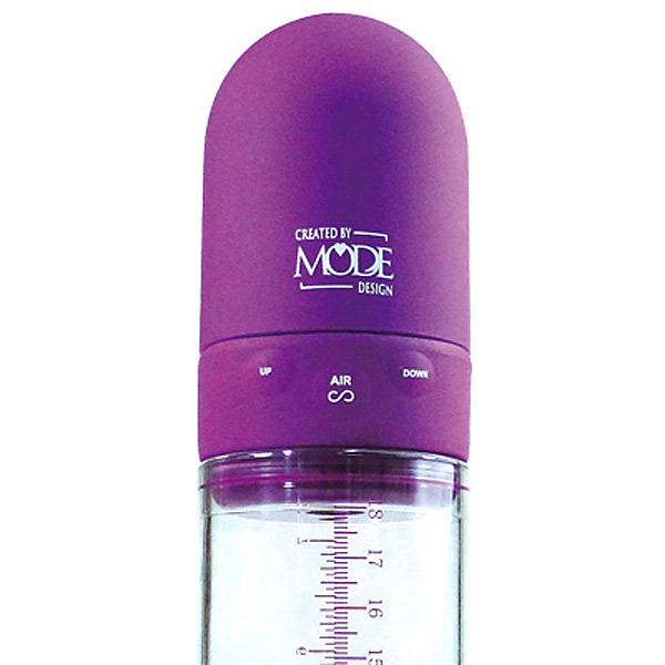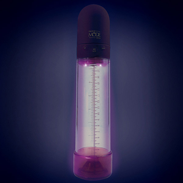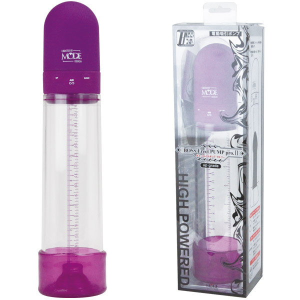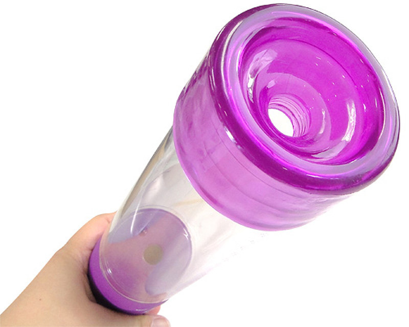 ペニスの長さが一目瞭然!力強い吸引でサイズアップが計れる紫色の電動吸引ポンプ。