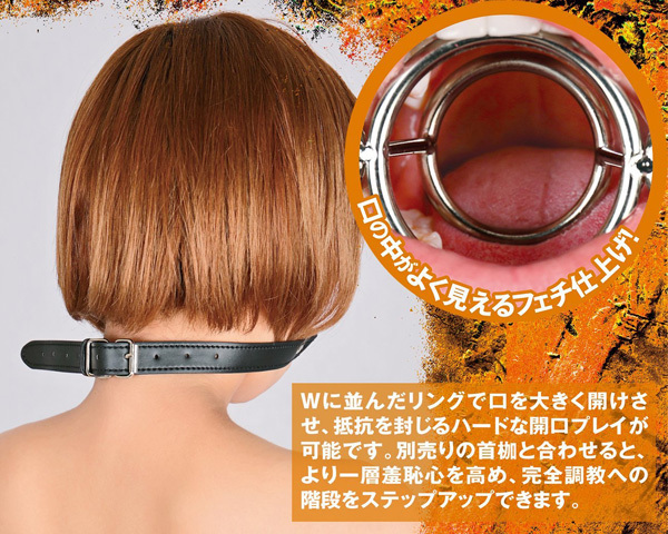 喉奥の粘膜まで視姦!唇と舌を押さえ込むWリング仕様の開口口枷。