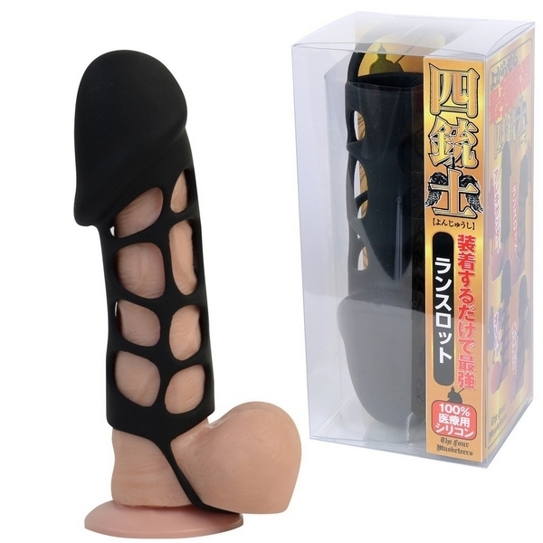 装着するだけで+1.5cmサイズアップ♪オールカバータイプのペニスサック「四銃士 ランスロット」。