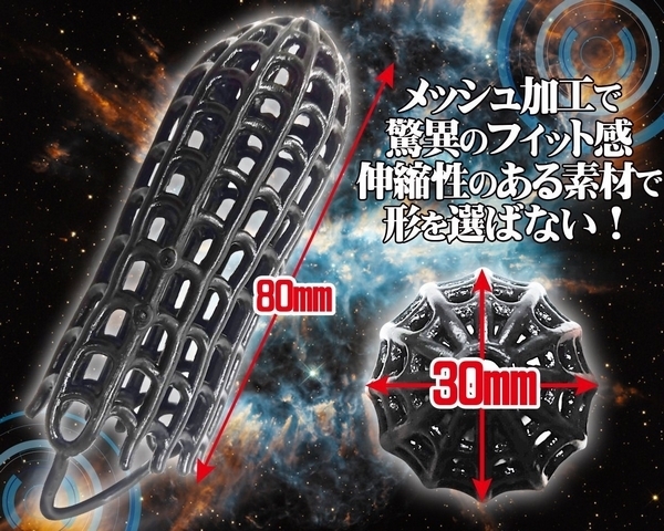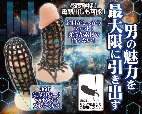 驚異のフィット感!オールカバーにもハーフカバーにもなるメッシュ状のペニスサック。