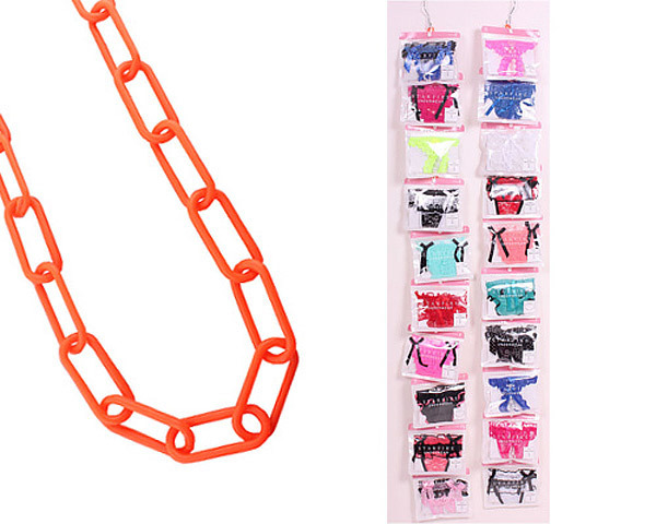 パールビーズやTバック、シースルー素材など「カワイイ」と「セクシー」がギュギュッと詰まった、デザイン豊富な女性用ランジェリーセット♪店舗用のディスプレイに便利なフック&チェーンも付属しています。