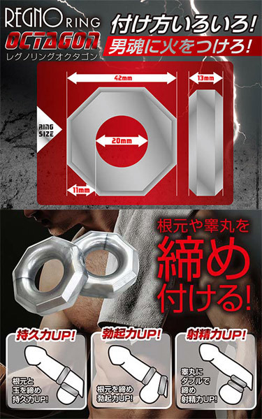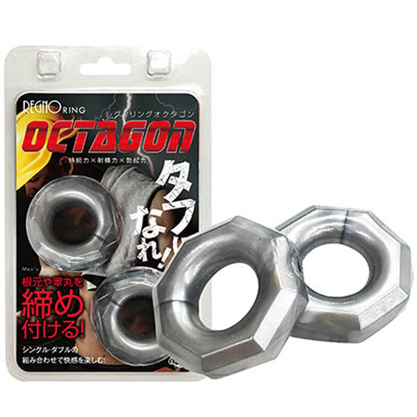 Wリングで男魂に火をつけろ!持続力×射精力×勃起力をサポートするペニスリング2個セット「レグノリング オクタゴン」。