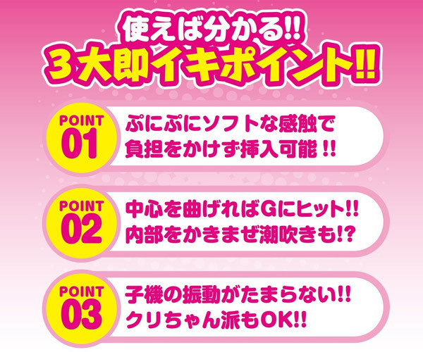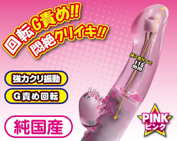 挿入部のサイズは約11.5cm、中心を曲げればGにヒット!内部をかき乱す回転で潮吹き体験も可能!さらに、クリトリス派にも嬉しい突起付きの強力振動クリバイブも装備しています。