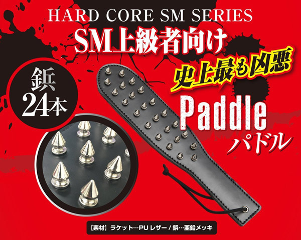 24本の鋲を備えたハードなパドルでフルスイング!鋲は片面のみなので、裏側の平らな面でスタンダードな調教プレイも可能です。