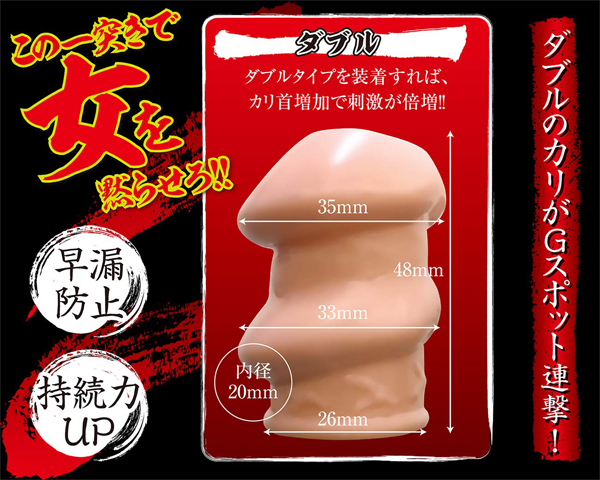 早漏抑制&持続力アップ!!ダブルタイプを装着すればカリ首増加で刺激が倍増。