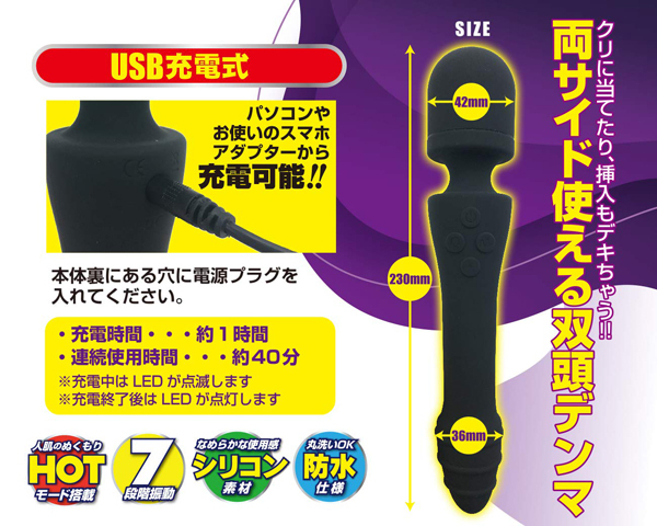 ギャル系AV女優のカリスマ「AIKA」が思わず悶絶!!よくばりAIKAが認めた、両面使える双頭デンマ!!クリに当て気持ちよくなってきたら挿入も可能な1台2役!!使い方いろいろなよくばりデンマで感じたことのないオーガズムを体感!【ノーマルヘッド】7段階の重量感のある強力振動、女性器に当てれば確実に潮が吹けるかも!?【ホットヘッド】7段階振動、気持ちよくなってきたら挿入可能。