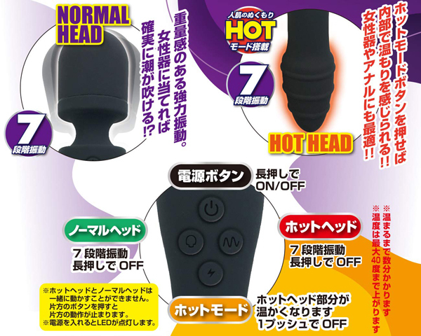ホットモードボタンを押せば内部で温もりを感じられる!!女性器やアナルにも最適!