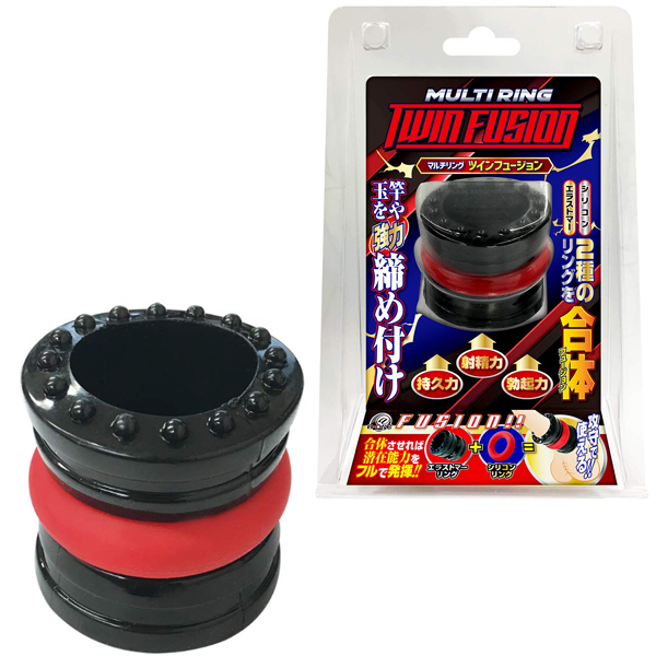 シリコン×エラストマーが合体(フュージョン)!締め付け感が超アップ!2種類のリングをシーンに合わせて自由に付け替え!それぞれ単体でも効果抜群!合体させれば潜在能力をフルで発揮!玉や竿を強力に締め付け、勃起力・射精力・持久力をUP!!攻守ともにスキのないパワー漲るZ級のアイテムをお届けします。