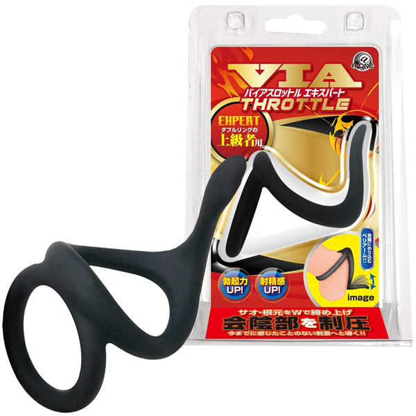 男性器を根元からギュッと締め付け会陰を圧迫刺激!射精を超えた快感を追求する男性のためのペニスリング「バイアスロットルリング」。