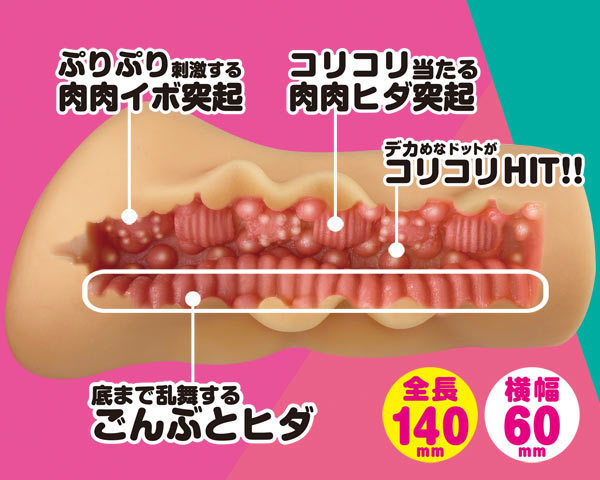 肉々しくしっかりとしたイボや突起が貴方のムスコをゴリゴリ刺激!強く締め付けながらうねって絡む淫乱ママに思い切り甘えよう♪高品質な純国産製、非貫通、ローション付属