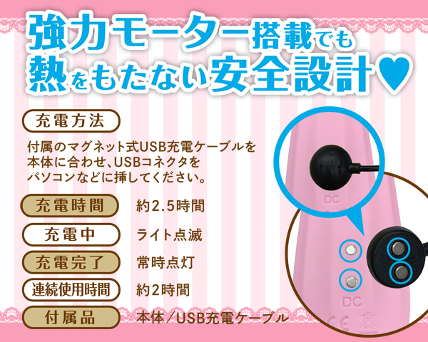 仕様:パッケージ:28.0×8.0×5.3cm 本体:全長21.0cm・ヘッド径5.0cm セット内容:本体、充電ケーブル USB充電式