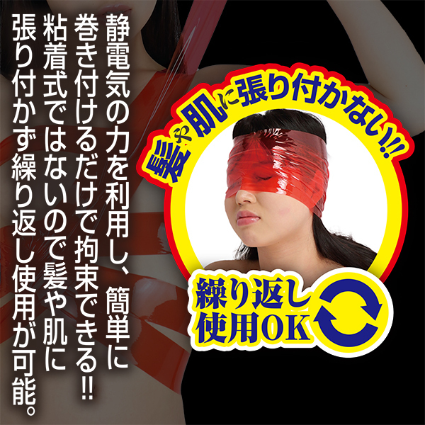 ●人気の拘束具「SMart」シリーズ●扱いやすい5cm幅の赤色テープ●全身に惜しまず使える長さ15m●静電気の力による優しい密着感●粘着素材不使用なので再利用OK。
