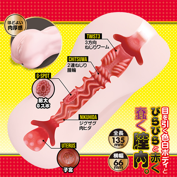 <内部形状>●3方向ねじりワーム●2連ねじり膣輪●ジグザグ肉ヒダ●肥大Gスポ●子宮