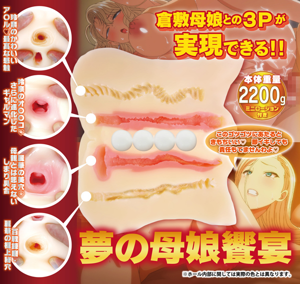 「ルネピクチャーズ」大ヒット驀進中OVA「催眠性指導」シリーズを、「ルネギフト」の経験を活かしオナホールで大再現した「超永久保存版」!!2019年上半期大反響中で発売開始されたOVAシリーズ「催眠性指導」がまたまたスペシャルなオナホールになって帰ってきました!今作品は世の男性の要望に応え「倉敷母娘」と夢の3P実現可能に特化した「倉敷母娘」(玲奈&麗華)をイメージして”感度がいいヤリマン感”をコンセプトに「倉敷母娘」を攻略すべくホールの研究を重ね、ついに自信を持ってお薦めできる商品となりました!今作は「倉敷母娘」(玲奈&麗華)に特化した4穴仕様大型ホールに仕上げ、超ドエロ母娘の感触・肌触り・感度などイメージ通りに仕上がった自信の作品となります!単体でもご満足に自信はございますが、OVAを見ながら使用していただけますと尚更昇天度がUPいたします!ご満足いただけますお客様の笑顔が思い描けます。