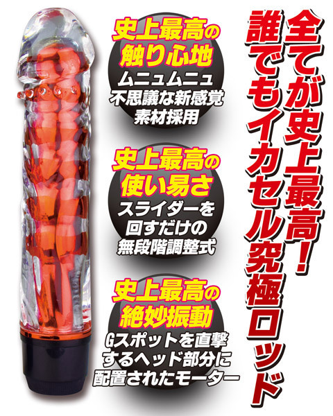 ●むにゅむにゅの柔らか素材●クリア×レッドカラー●リアル造形のストレート型●カリ下にトゲ突起を配置●初〜上級者まで使えるサイズ感●Gスポ直撃のヘッドモーター搭載●スライダーをひねるだけの簡単操作●強弱自在の無段階調整式。