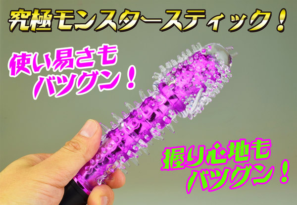 ひとたび挿れれば全方向からプリプリ突起が押し寄せる未曽有の快感!モンスターのように内部を刺激しまくるスティックタイプのバイブレーター。