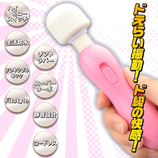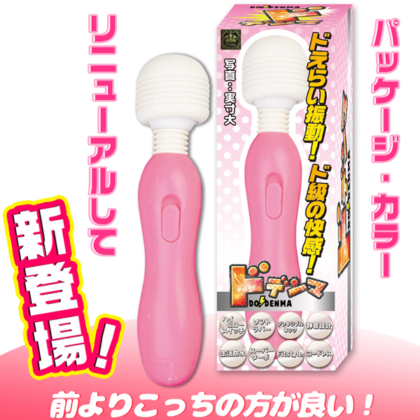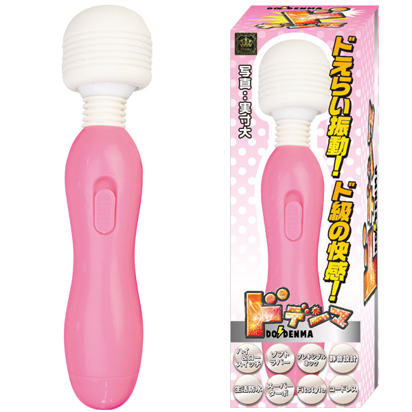ドえらい振動がドドーンと炸裂!超ド級の握り易さもめっちゃ嬉しいお手軽電マ『ドデンマ』がより可愛いカラーになって新登場!パッケージもリニューアルし、ソフトラバーヘッド&フレキシブルネックだから優しい当て心地です♪耳障りな音をカットした静音設計になっておりスイッチは使いやすい強弱2段階!カラー:ピンク