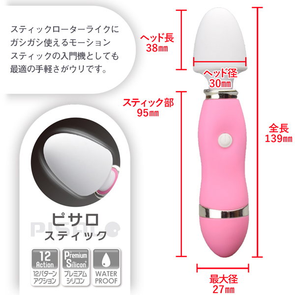 携帯サイズなのに12種類のアクションとパワフル振動が味わえるお手軽ミニ電マ。