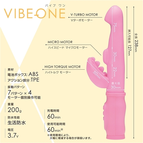 ヘッドにターボモーター・G位置にハイスピードマイクロモーター、さらにサブバイブにもハイトルクモーターを搭載した3バイブ+スイングアクションが楽しめるプレジャーグッズ。