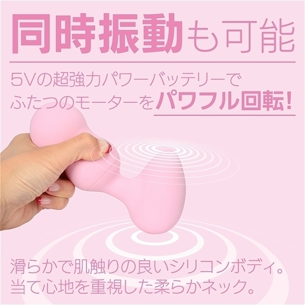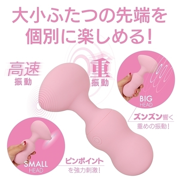 エッグ型ヘッドの左右に大小、サイズの違うモーターを配置!小ヘッドにはピンポイント用に微細振動モーターでポイント刺激を楽しめます。