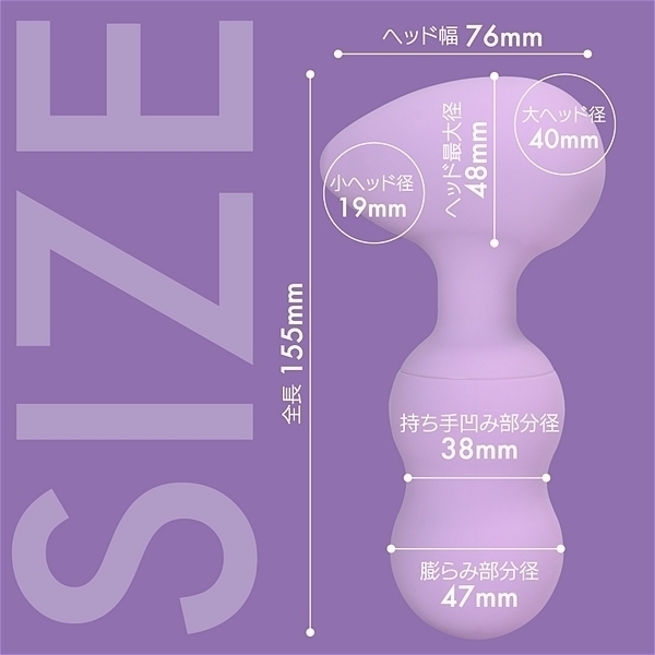 仕様:パッケージ:17.5×10.0×5.2cm 本体:全長15.5cm・ヘッド幅7.6cm・ヘッド最大径4.8cm・持ち手最大径4.8cm・持ち手へこみ部分径3.8cm 重量:190g USB充電式
