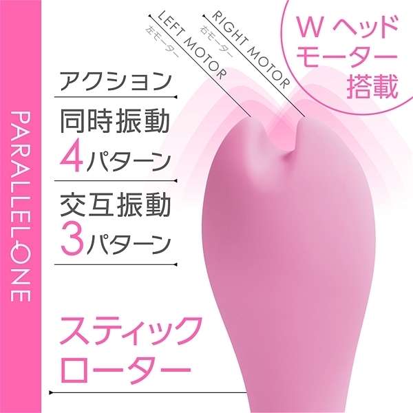 先端に並列で2つのモーターを搭載して、個別に振動させる事が出来るツインモータースティックです。